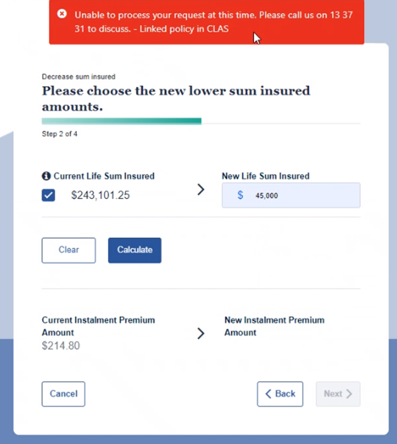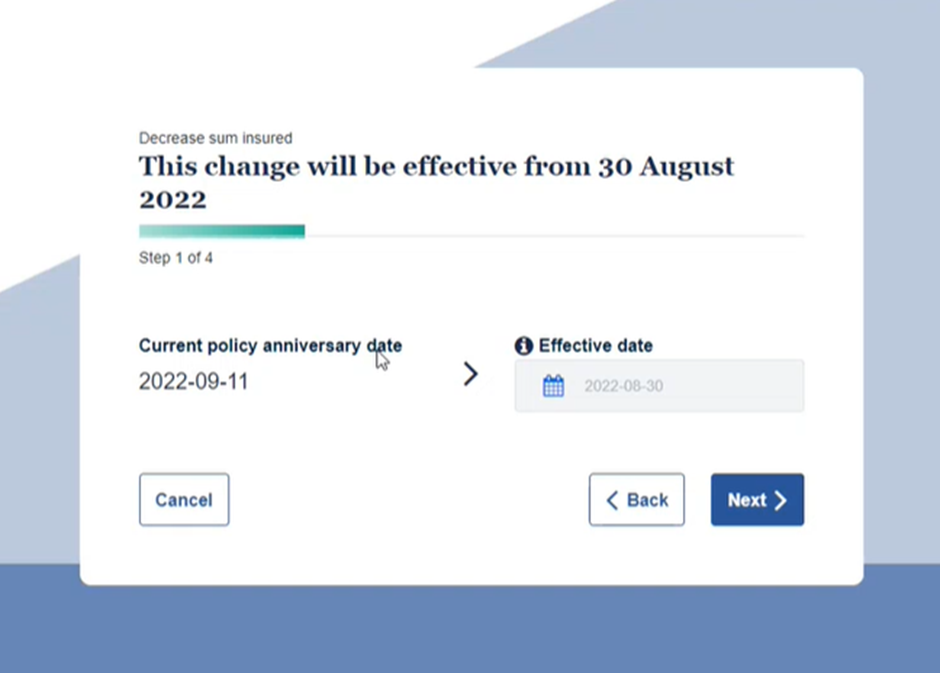 My Resolution Life portal has a new premium calculation tool that allows you to calculate a decreased sum insured and generate a quote online or submit the request to have the change applied to the customers policy, with applicable consents.
