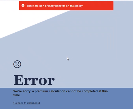 As mentioned, this is currently only available to stand-alone policies with primary benefits, and our goal is to expand the functions of the premiums calculation tool. If the policy doesn’t meet the criteria, you may see the following messages.